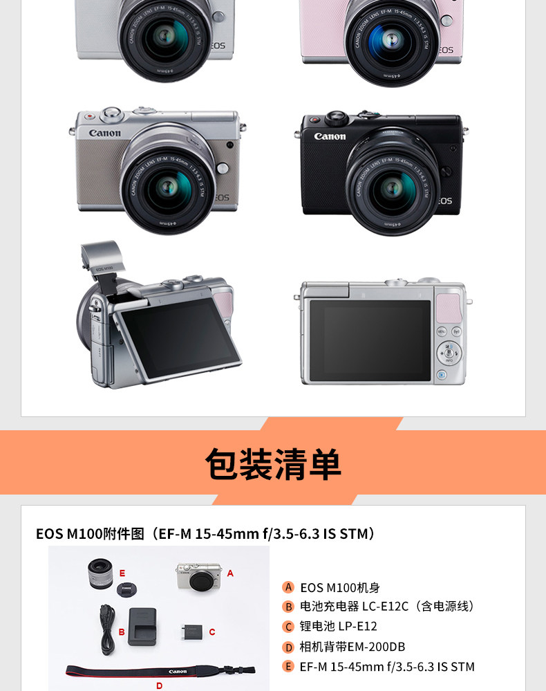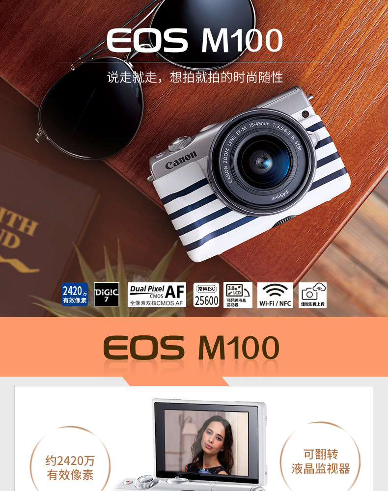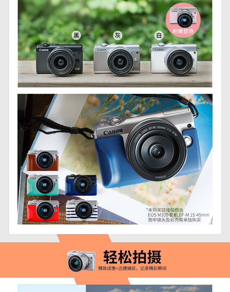 佳能 新色樱花粉EOS M100 单头套机 EF-M 15-45mm IS STM